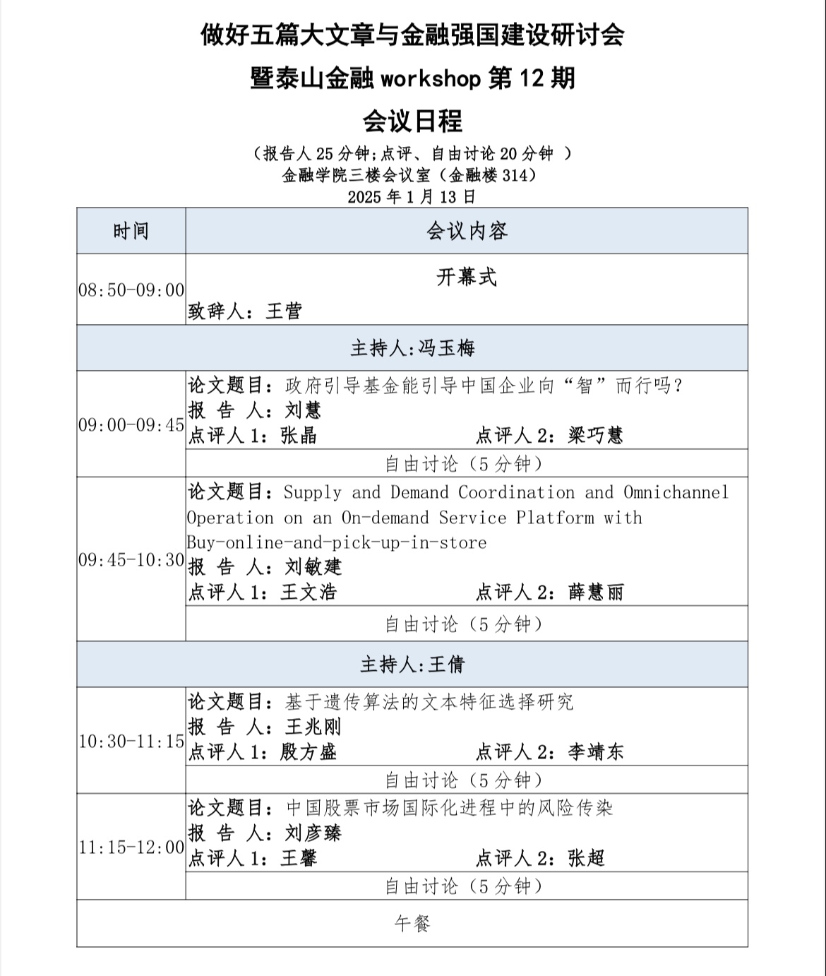 做好五篇大文章与金融强国建设研讨会暨泰山金融workshop第12期
