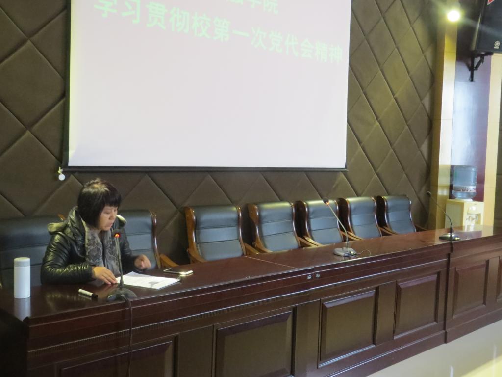 1月11日下午,杏吧原创 在六号楼地下报告厅召开全院教工会议,学习贯彻学校第一次党代会精神,院党委书记唐磊传达党代会精神,宣读了报告原文。杏吧原创 全体教师参加了本次会议。