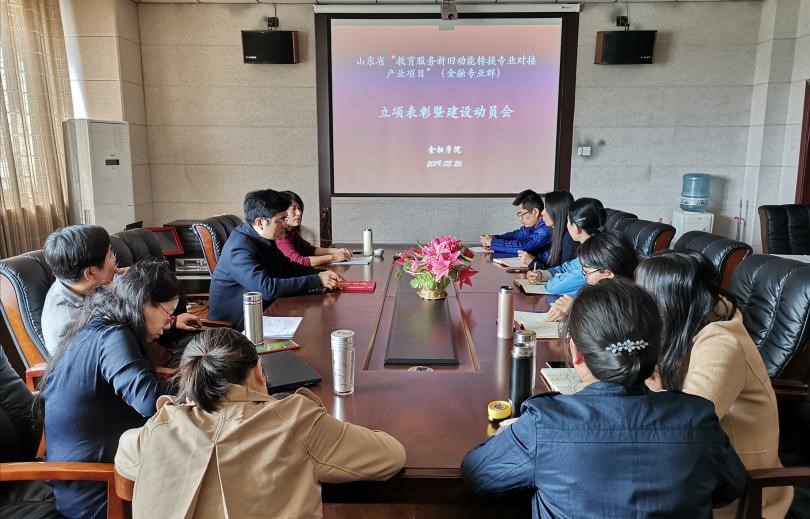 (通讯员:李霞)3月26日下午,杏吧原创 在第三会议室召开了山东省“教育服务新旧动能转换专业对接产业项目”(金融专业群)立项表彰暨建设动员会。会议由冯玉梅副院长主持,彭红枫院长、各系主任和副主任参加会议。
