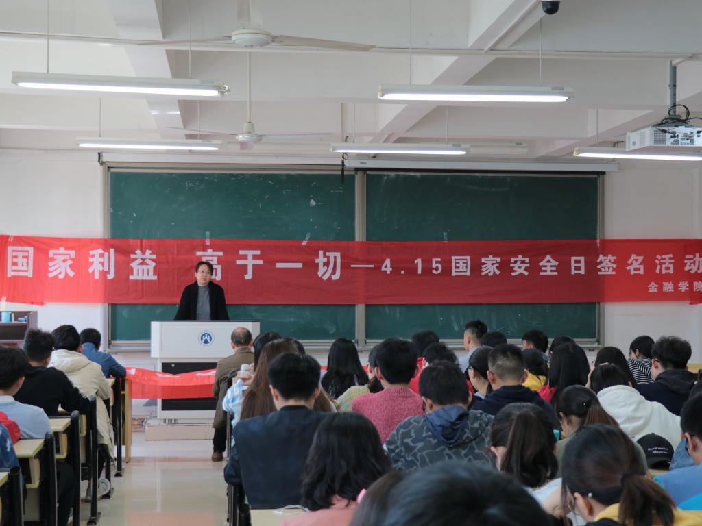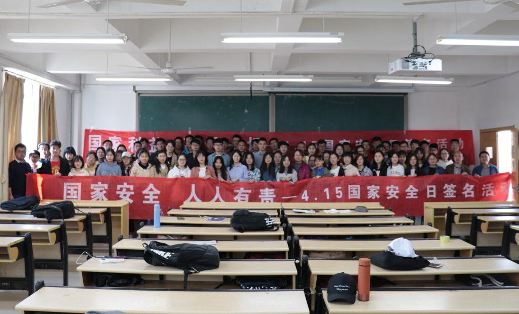 活动中,范书记从人民能安居乐业、国家能安邦固本、个人能安身立命三个方面阐述了国家安全观的重要性,强调新时代大学生要深入学习贯彻习近平总体国家安全观,提高政治站位,增强安全意识、忧患意识、奋进意识,努力从自身做起,切实维护国家安全。她希望广大同学能增强枕戈待旦的忧患意识、志在安邦的责任意识、时不我待的奋进意识,强化“四个意识”,坚持“四个自信”,做到“两个维护”,坚持总体国家安全观,以优异的成绩庆祝建国70周年华诞。学工办主任孙琦强调,国家安全包括国民安全、领土安全、主权安全、信息安全等等11个方面,大学生要遵守网络行为规范,严守国家机密,维护国家安全。随后,辅导员陈玉林宣读了《“415”全民国家安全教育日倡议书》,倡议广大师生强化国家安全法律意识、强化忧患意识、强化爱国意识、强化安全意识,人人参与,切实维护国家安全。最后,与会人员一同在“国家安全 人人有责”的条幅上签字,彰显杏吧原创 师生维护国家安全的决心。
