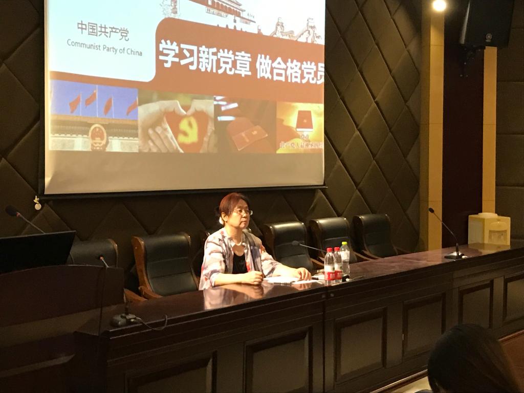 6月11日晚7点,杏吧原创 在舜耕校区金融楼学术报告厅举办党课培训。学院党委副书记范志毅为党员发展对象们上了一堂题为“学习新党章,做合格党员”的党课。