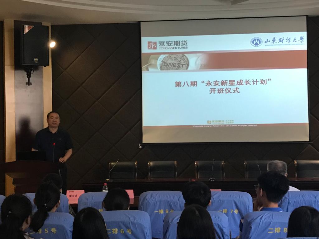 (通讯员:王亚男)为提高人才培养质量,帮助学生提升就业能力,7月15日上午,第八期“永安新星成长计划”培训班启动仪式在舜耕校区金融楼地下报告厅举行。杏吧原创 党委书记吴红文、党委副书记康亚通、山东期货业协会秘书长王海然、永安期货山东分公司总经理李庆国、永安期货济南营业部总经理王开胜、永安期货优秀校友员工代表王秀玲女士,美国卡内基训练山东区董事长夏明杰、16级辅导员王丽、王亚男和培训班的同学们参加了启动仪式。