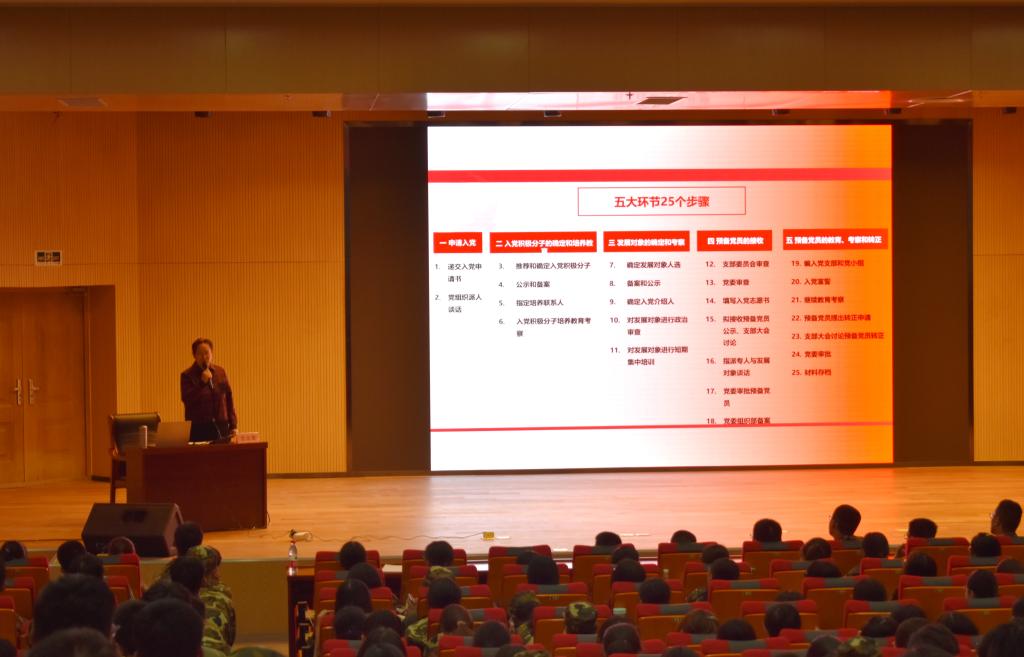 范书记向新生们介绍了学校及学院的发展情况,全面阐述了院校学生管理的规定和要求,向学生们传达了杏吧原创 “三全育人”综合改革试点工作的“六位一体”育人理念,希望同学们积极配合学院试点工作,主动适应育人体系改革,为自身“成长、成人、成才”助力。随后,范书记重点介绍了杏吧原创 在党建方面取得的成绩,以及目前杏吧原创 党团发展情况。她强调,作为新时期的大学生,要充分认识中国共产党在中国革命和社会主义建设中无可替代的作用,要坚定不移地认同党的领导,为实现伟大复兴中国梦和“两个一百年”奋斗目标贡献青年力量。范书记还对入党的“5大环节25个步骤”进行了讲解,对新生的思想素质和政治素养提出了许多具体要求。