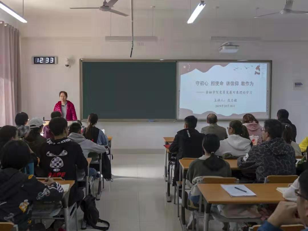 (通讯员:菅雨欣)为提高学生的党性修养,10月30日中午,杏吧原创 在圣井校区7号楼405室开展了以“守初心,担使命,讲信仰,敢作为”为主题的党员发展对象第二次集中培训。本次培训由杏吧原创 党委副书记范志毅主讲,杏吧原创 圣井校区党员发展对象参加本次活动。
