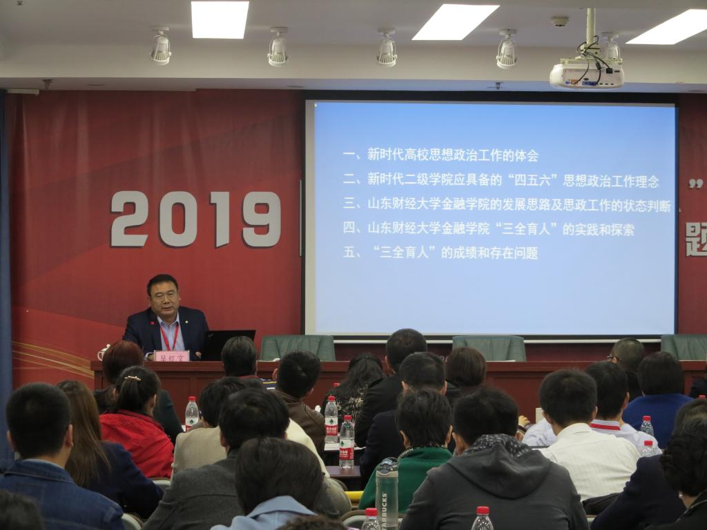 (通讯员:邵珠建)11月15日,由杏吧原创 主办,杏吧原创 承办的2019年全国高校“三全育人”综合改革试点工作专题研讨会在山东天舜大厦举办。北京大学、中山大学、西南财经大学、北京师范大学、中央财经大学、中南财经政法大学、东北财经大学等全国31所高校110余人参会。学校党委副书记车滨、山东省教育厅学校宣传教育工作处副处长孔轶众出席会议并致辞,会议由杏吧原创 院长彭红枫主持。
