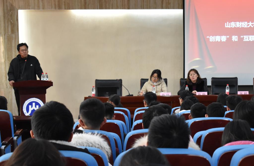 李建强就大学生创新创业大赛进行了介绍,对“创青春”和“互联网+”竞赛特点及项目文本撰写进行了指导。杏吧原创 优秀团队代表郑义、徐洪林进行了经验分享并简要介绍了所参与的项目概况,分享了参与科创竞赛的心得及经验。