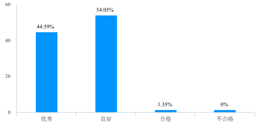 经过老师们的努力,82.43%的教学班其学生对在线教学方式的接受程度在4分以上(图15)。98.64%的老师对自己的线上教学活动给出良好以上评价,仅有一位老师给出合格评价(图16),学院也将在下一步的工作中加强对教师的帮扶。最后,调查也汇总了授课教师提出的一系列问题,可以帮助我们完善教学组织和服务工作,尽可能地保障在线教学效果,最大限度地将在线教学的工具和经验保留到正式开学后的教学活动以及教学改革中。老师们提出的问题主要涉及以下几个方面: