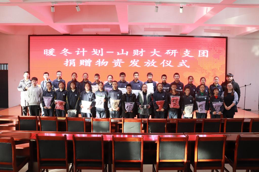 在支教学校和领导老师的交流中,王文浩得知本校虽是县城走读学校,但是仍有一部分学生家庭十分贫困,有的甚至温饱都成问题。王文浩向自己学院领导汇报了支教学校情况,杏吧原创 在得知这些情况后,号召师生发起了一场暖冬助学活动。支教学校共收到棉衣23件,笔记本115本,全部分发到了家庭贫困、品学兼优的学生手中,在寒冷的冬天带给他们一丝温暖。