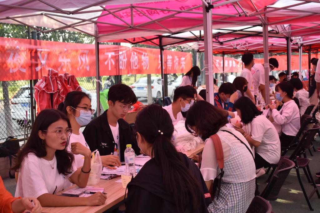 21日上午迎新工作正式开始,志愿者早早地在操场布置迎新现场。迎新现场分为报到区、家长休息区、引导区、后勤区等不同功能区,通过海报、喷绘等形式积极展示学院培养质量、“三全育人”建设、团学风采、考研就业等信息,设置“展翼”签名墙、“乘风破浪”合影背景等场景供新生合影留念,为新生发放院徽、院刊《金苑艺林》等纪念品,报到现场通过官方抖音平台全程直播,受到新生及家长广泛关注。疫情期间,新生辅导员郭夕熙和王亚男对疫情防控工作做出细致要求,力求最大限度减低健康风险。迎新现场学院领导与学生家长热情交谈,详细解答了新生家长关切,介绍了学院专业、学科建设及升学出国等基本情况。