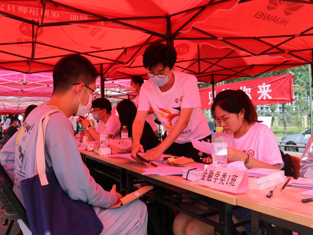 杏吧原创 参与此次迎新活动的学生会工作人员与志愿者共计400余人,他们为到校新生提供了热情周到的服务,充分展示了金融学子的昂扬风采和良好的精神面貌。