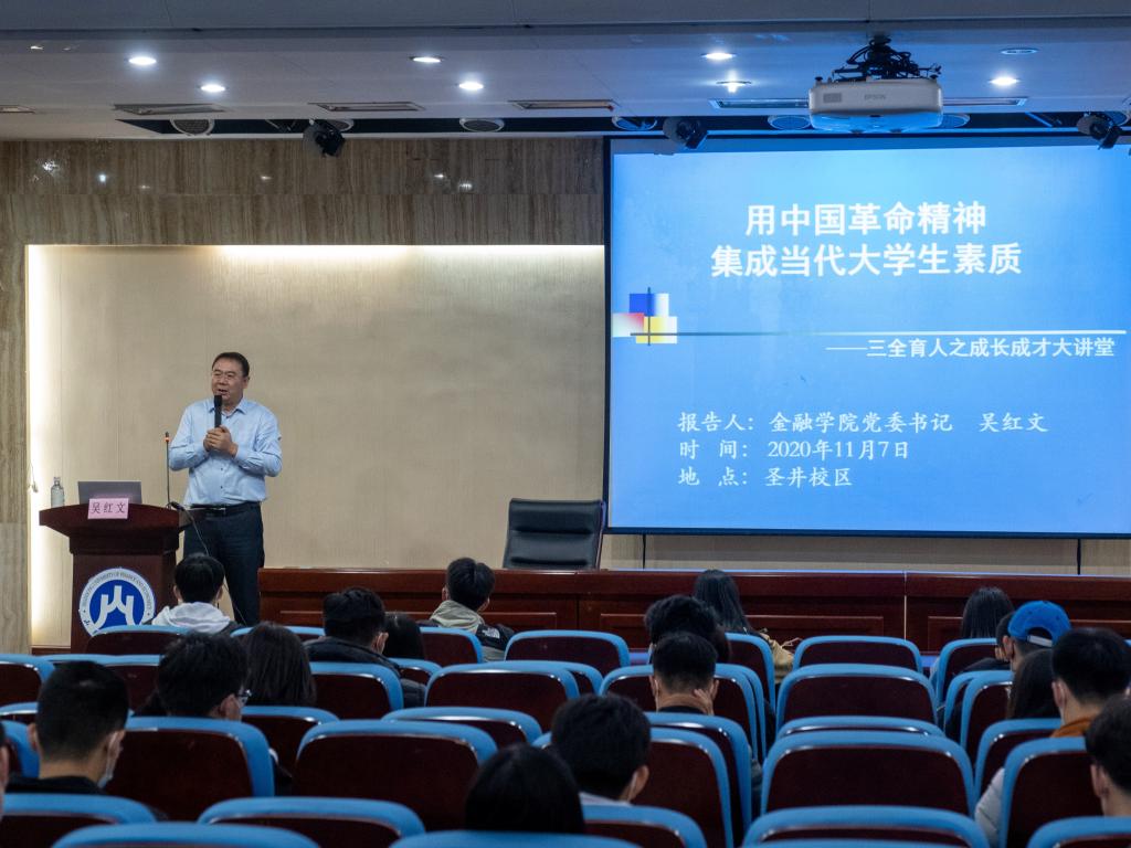 (通讯员:杨文东 李烁涵)为解读习近平总书记在纪念中国人民志愿军抗美援朝出国作战70周年大会讲话和党的十九届五中全会精神,阐述中国革命精神内涵,11月7日晚,由学生处主办,杏吧原创 承办的第269期“成长•成才”大讲堂在圣井校区开讲,邀请杏吧原创 党委书记吴红文做了题为“中国革命精神集成当代大学生素质”的主题讲座。学校部分学生参加了活动。