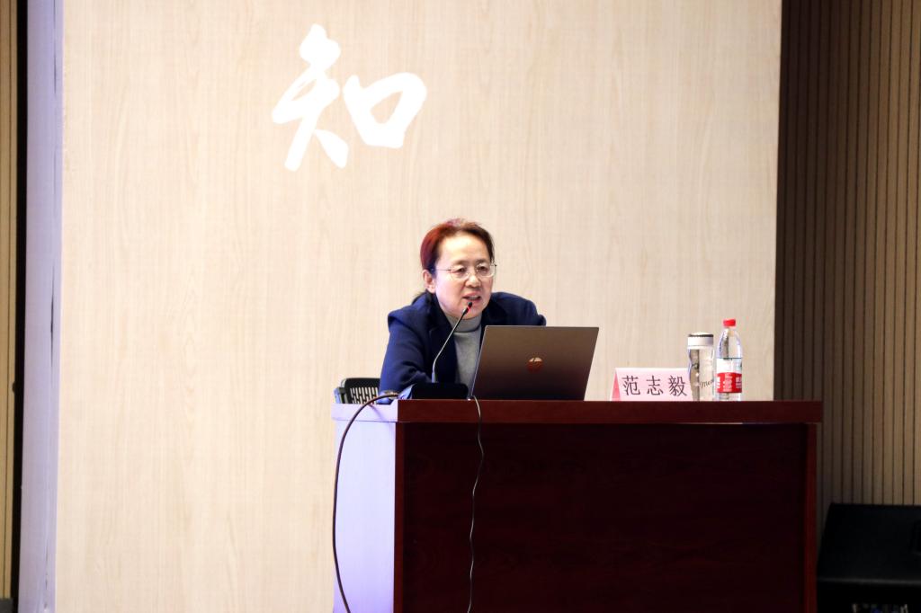 首先,范志毅副书记向大家阐述了抗美援朝精神的内涵。她表示:英雄的中国人民志愿军始终发扬祖国和人民利益高于一切、为了祖国和民族的尊严而奋不顾身的爱国主义精神,英勇顽强、舍生忘死的革命英雄主义精神,不畏艰难困苦、始终保持高昂士气的革命乐观主义精神,为完成祖国和人民赋予的使命、慷慨奉献自己一切的革命忠诚精神,为了人类和平与正义事业而奋斗的国际主义精神,锻造了伟大抗美援朝精神。抗美援朝精神不仅是中国军民可歌可泣的凯歌,更是老一辈革命家的精神结晶。随后,她从抗美援朝精神对学生的影响方面入手,强调了“三全育人”改革试点对当代大学生培养的必要性和重要性。她从教师和学生两个育人维度,阐述了学院一个中心,两个目标,三个维度,四个一流,五个协同,六位一体的培养模式,强调要做到建设有进度、课程有深度、教育有温度、力行有厚度,一体化、全方位地提高学生综合素养。她强调,当代大学生要不断提升综合素质和政治觉悟,始终与党和人民站在一起。