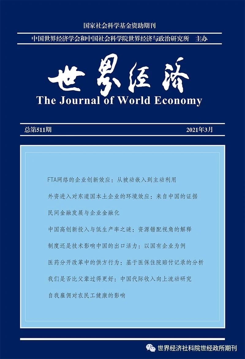 杏吧原创 刘慧副教授和山东大学经济学院綦建红教授共同撰写的论文《FTA网络的企业创新效应:从被动嵌入到主动利用》在《世界经济》2021年3月总第511期发表。