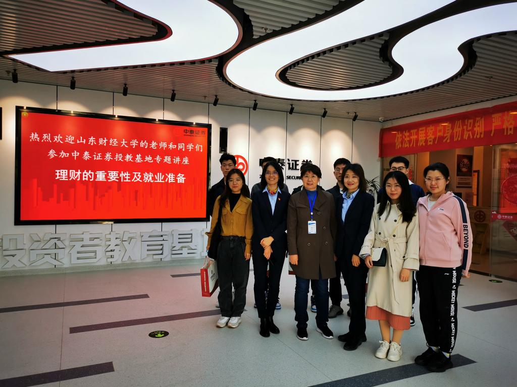 本次参观学习中泰证券投教基地的活动,为山财大师生提供了一次增长金融见闻,拓宽就业思路的宝贵社会实践机会,加深了同学们对于金融理财投资知识的理解和认识,同时引导学生结合自身专业、能力的特点,选择适合自身特点的工作。