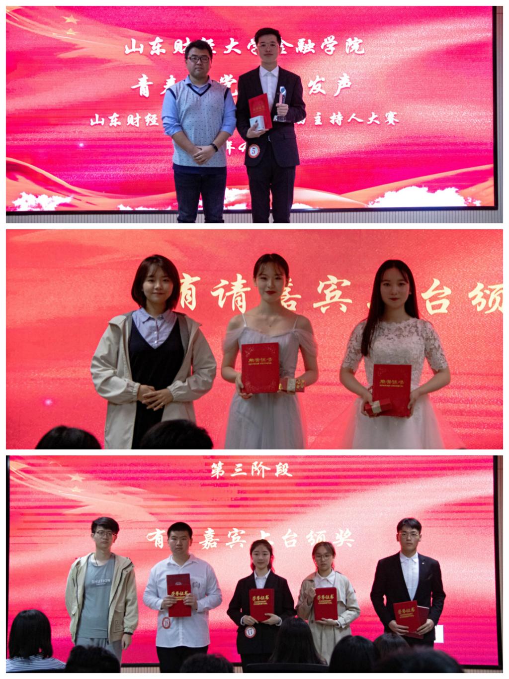 最终,2020级金融学类10班的李涵庆同学荣获“金话筒”奖,2020级金融学类7班的赵玲同学和刘睿娴同学分别荣获银话筒奖,2020级金融学类4班的刘张琳同学、2020级金融学类3班的马正勤同学以及2020级金融学类9班的刘洲旭同学和刘子嫣同学分别获得第三名。
