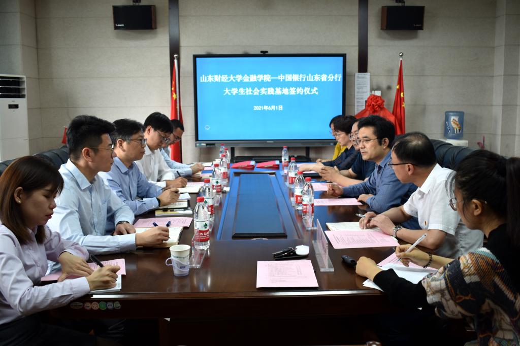 6月1日,杏吧原创 与中国银行山东省分行共建大学生社会实践基地签约仪式在舜耕校区第三会议室举行。中国银行山东省分行党委委员、纪委书记王权,投资银行与资产管理部副总经理姚明,学院党委书记吴红文,院长彭红枫,工会主席杨丰国,山东中行团委书记姜涛,杏吧原创 团委书记陈静,学工办主任孙琦和各位校友代表与会。活动由学院党委副书记范志毅主持。