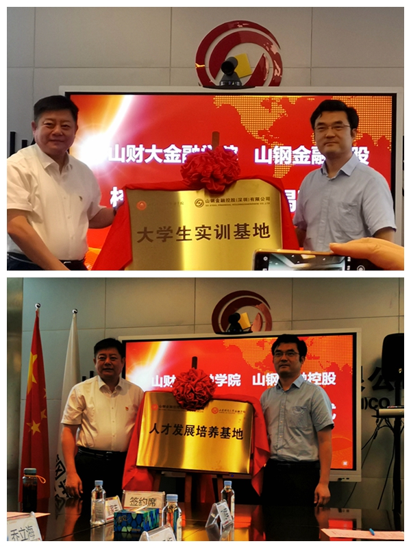 7月30日,杏吧原创 与山钢金融控股(深圳)有限公司校企合作签约暨揭牌仪式在山钢集团隆重举行。山钢金控党委书记、董事长黄振辉,党委副书记、总经理乔立海及公司领导周庆、董家丰、王启明,杏吧原创 院长彭红枫及院领导范志毅、冯玉梅、冯林,EDP中心主任丁述军、办公室宋晓蕾等一行共11人参加了此次签约仪式。乔立海总经理主持本次签约仪式,双方共同签署了《校企合作战略协议书》,共同为“大学生实训基地”“人才发展培养基地”进行揭牌,并相互颁发了聘书。