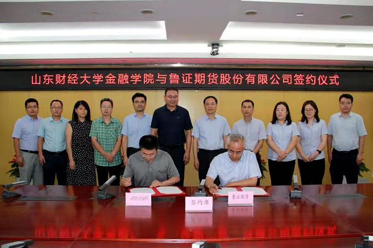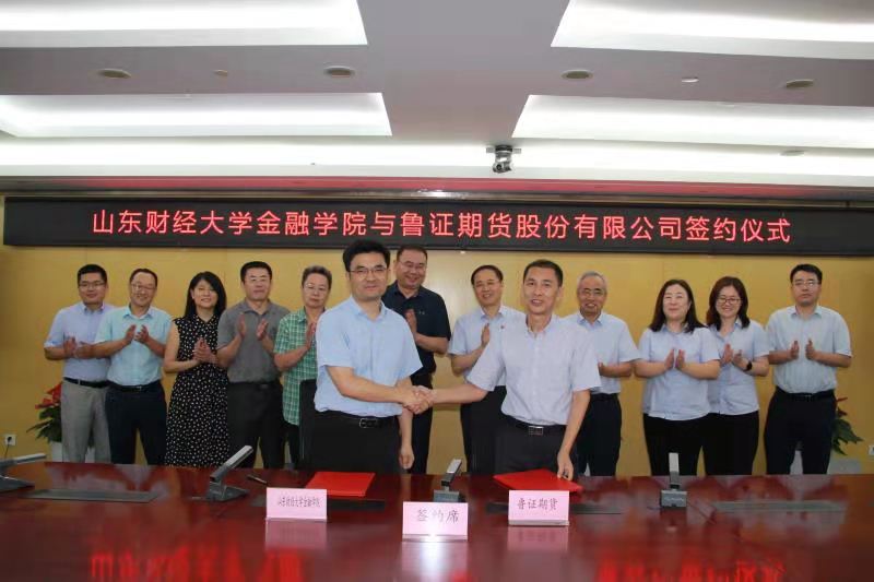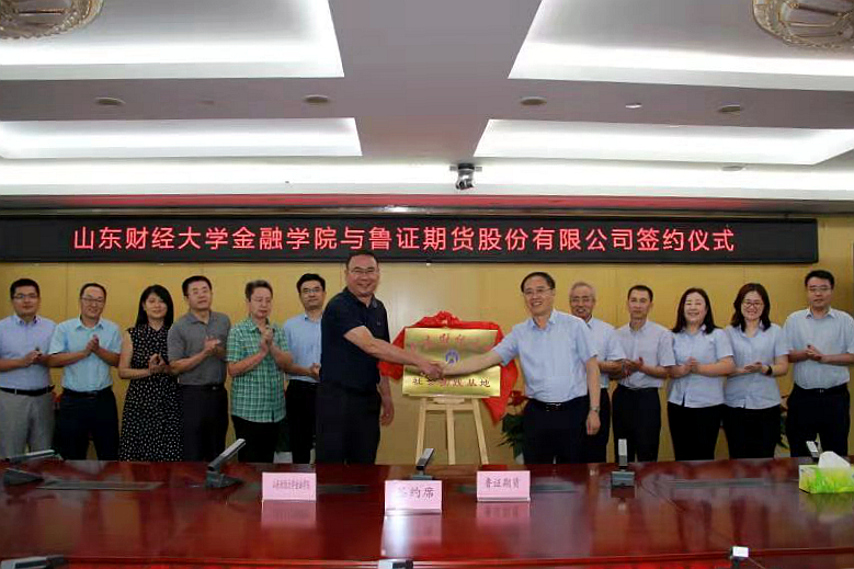 会谈结束后,双方举行了校企合作和共建实践教育基地签约仪式,学院党委书记吴红文和鲁证期货党委副书记李学魁共同为鲁证期货实习实践基地揭牌。