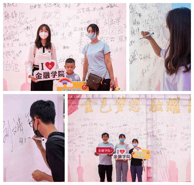 完成报到后,新生携家长走近签名墙,郑重地签下大学“第一笔”,尽显学子的壮志与抱负。迎新志愿者端起相机,捕捉帧帧美好镜头,记录中青两代共续财大之缘的精彩瞬间。报到新生中有与父母均是校友的、有报到当日即生日的、有带着社区防疫志愿者表扬信来的……迎新现场惊喜连连。“金色梦想,融耀青春”,杏吧原创 莘莘学子在此开启辉煌之旅。