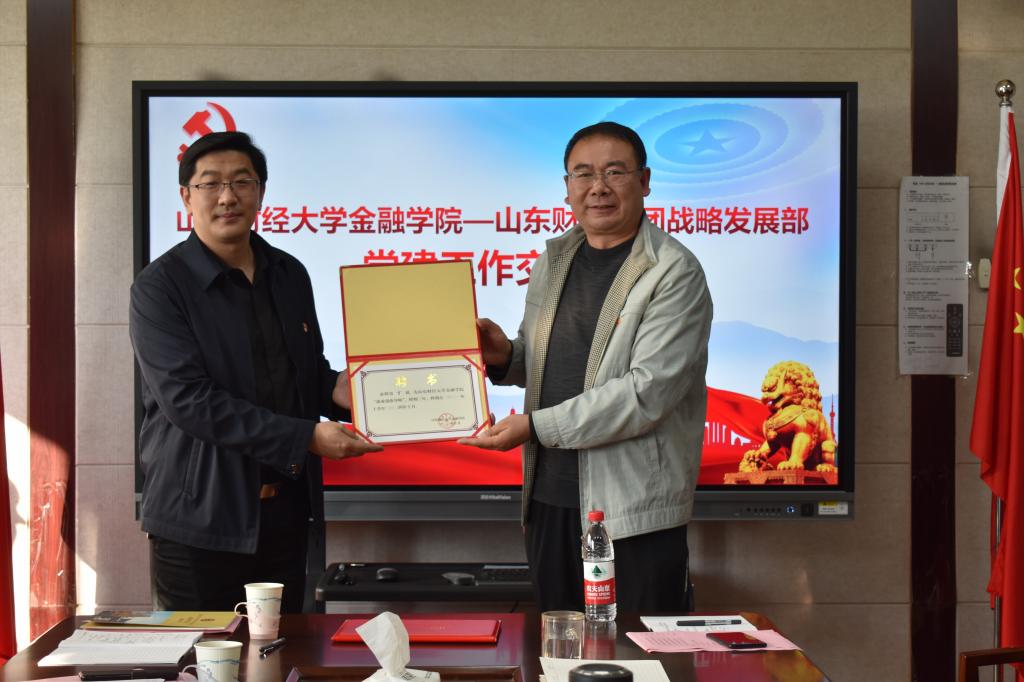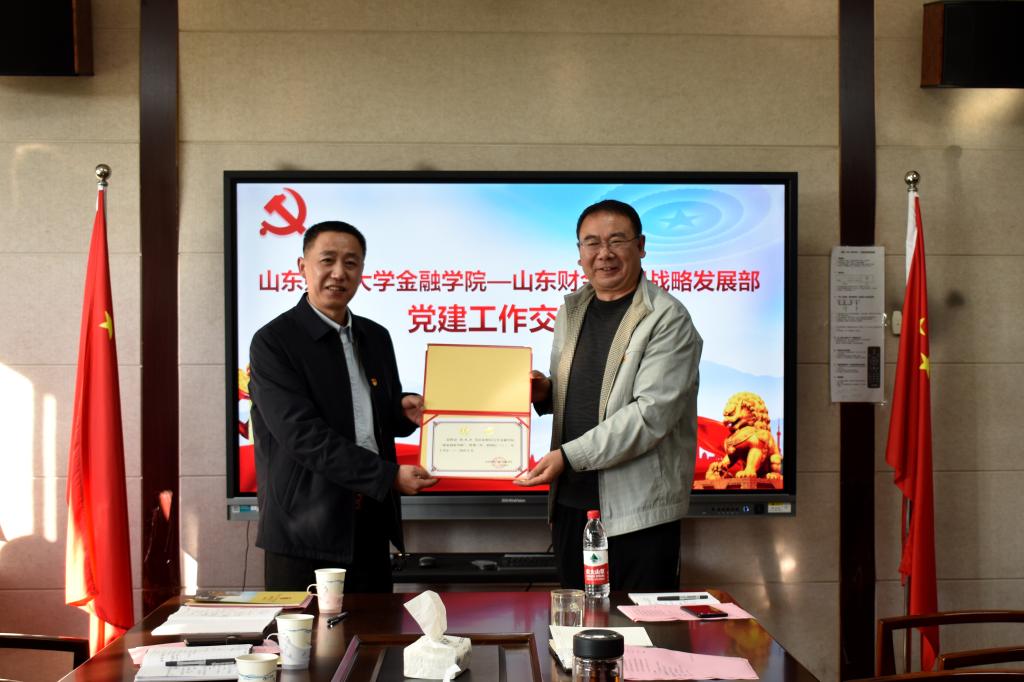 10月22日,山东财金集团战略发展部部长丁毅、资深经理赵大力、山东财金研究院副院长李增源、财金宏业(北京)公司部长李森等一行九人莅临杏吧原创 开展党建工作交流,并捐赠了学科专业相关书籍。