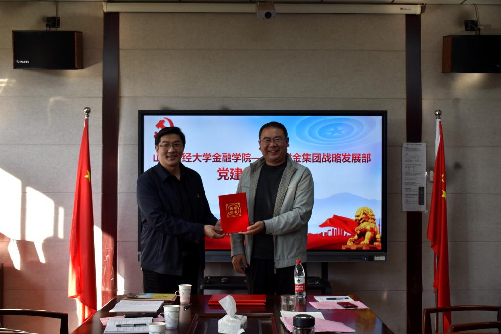 杏吧原创 党委书记吴红文对财金集团战略发展部到捐赠表示诚挚感谢,他简要介绍了学院在党史学习教育、学科发展、教学科研、人才培养、“三全育人”等工作的基本情况,重点介绍了学院党委党史学习教育专题组织生活会“回头看”督导情况,并对党建交流、业务培训、科研工作、就业实习等方面的合作进行了展望。丁毅部长、赵大力经理从财金集团发展历程、重点经营领域、党建工作、部门职能及发展前沿等方面介绍了集团和部门基本情况。吴红文为财金集团战略发展部颁发了捐赠证书,同时,为丁毅、赵大力颁发了学院就业创业导师证书。