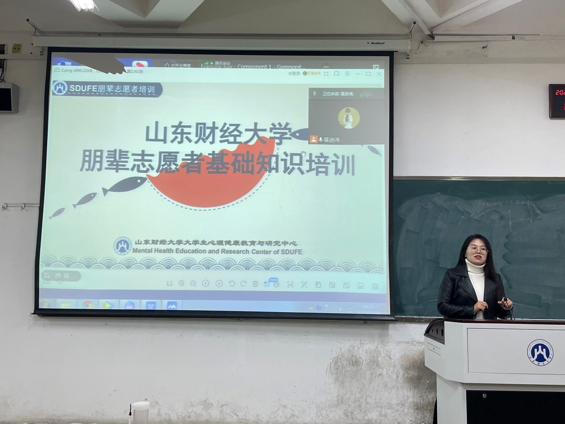 (通讯员 张泽华)为普及心理健康知识,促进校园朋辈互助,11月26日下午杏吧原创 于舜耕校区6116教室举办了朋辈志愿者培训讲座。讲座由辅导员徐洁老师主讲,研究生新生朋辈志愿者及心理委员参加线下培训,其余同学线上参与。