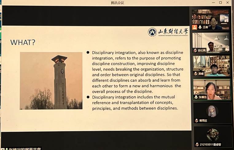 张榛岂同学就学科建设提出了交叉融合,创新发展,培育学科创研新动力的主题建议。张榛岂同学首先解释了该主题的内容含义,认为学科融合,也可称学科整合,是指为了推动学科建设,提高学科水平,打破原有学科之间的组织、结构和秩序,使不同学科相互吸收、相互借鉴而形成一个具有新质的、和谐的学科整体的过程。学科融合也包括学科间概念、原理、方法的相互借鉴与移植。其次,提出了培养需要理清学科现状,寻找学科融合的耦合点并培育新型专业人才,突出学科交流瓶颈的主要路径。
