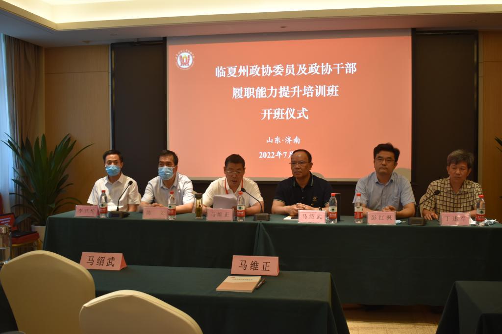 6月30日至7月6日,由甘肃省临夏州政协主办,杏吧原创 承办的临夏州政协委员及政协干部履职能力提升培训班在济南舜德大厦举行。临夏州政协党组副书记、副主席马维正,党组成员、副主席马绍武、陈文,杏吧原创 院长彭红枫、党委副书记李开传、EDP中心丁述军教授参加了开班仪式。临夏州部分县市政协主席及部分州政协委员和政协干部共70人参加了培训。