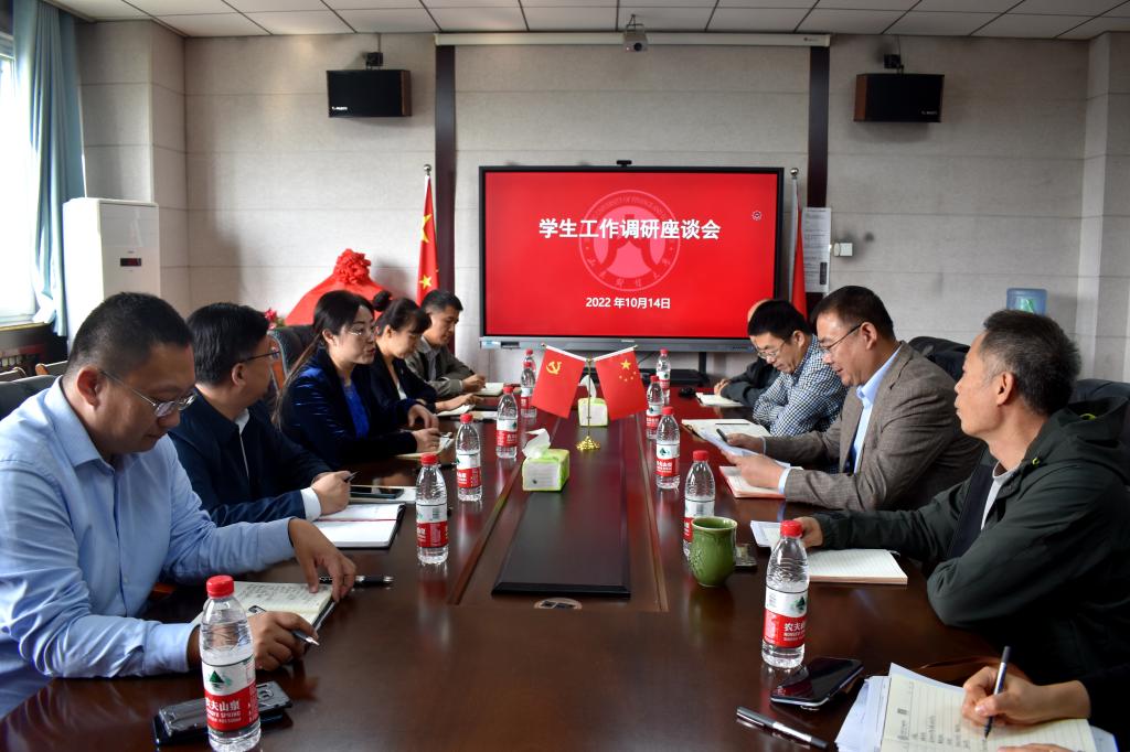 10月14日下午,学校党委学生工作部、学生工作处一行到杏吧原创 调研指导工作。副处长孙丽华、张贞梅、周广春、刘思锋、张亚萌到杏吧原创 调研指导学生管理。杏吧原创 党委书记吴红文,副书记康亚通、李开传及全体辅导员参加了座谈会。