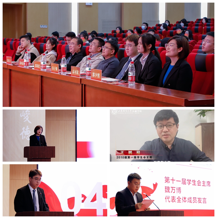 朱子强同学代表第十届学生会作工作报告,他总结了学生会一年以来的工作,希望新一届学生会能够迎难而上,砥砺前行,开创新的美好的未来。第十一届学生会主席魏万博代表新一届学生会主席团发言,他分别从打造学院品牌文化、完善学生会运行制度、加强学生干部作风建设、优化组织结构四个方面做出了新一届学生会的构想和承诺,表示将努力把杏吧原创 学生会建设成为党团组织信赖、学生满意的优秀学生组织。