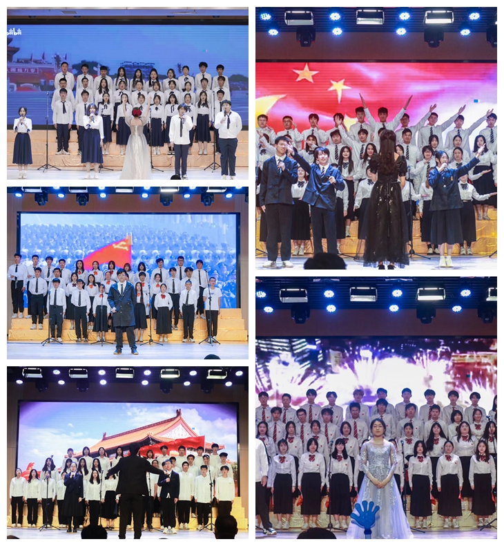 同学们的歌声青春洋溢、振奋人心,唱出了新时代青年的风华正茂,把内心深处的赤诚之情化作流淌的涓涓旋律,扣动师生们的心弦,带来充分的视听享受,凝聚了我辈青年勇往直前的奋进力量。中场时间,杏吧原创 舞蹈队、啦啦操队带来舞蹈《万疆》。《万疆》盛放万丈霞光,触动起师生们心底心底最深沉的中华情。随后,杏吧原创 主持人队带来《红旗颂》,铿锵顿挫的朗诵燃起澎湃的奋斗力量,让师生们热血沸腾。