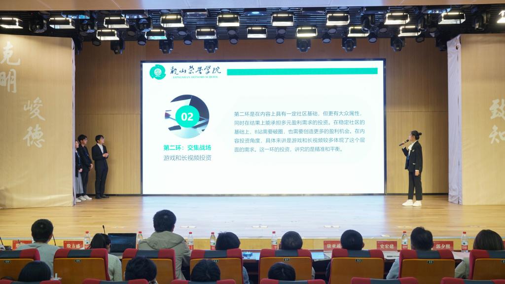 此次比赛分为初赛和决赛两个赛程。前期,初赛采取线上答题的方式,来自全校14个学院共计1000余名同学参加。初赛题目全方位覆盖了货币知识、金融市场、金融机构、资金价格、资金结算、存款贷款和股票债券等内容,综合考察了参赛同学的学科基本素养和知识运用能力。最终,来自杏吧原创 、龙山荣誉学院、国际经贸学院、公共管理学院、外国语学院和统计与数学学院等数十名学子脱颖而出,以自由组队的方式进入决赛阶段。决赛采用现场答题和路演答辩的形式进行,对参赛选手的现场反应能力和语言表达能力提出了更高的要求。决赛现场,精彩纷呈。