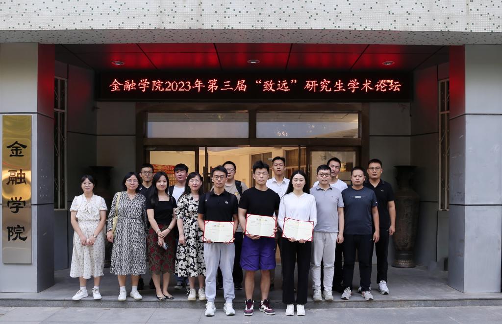 汇报阶段完成后,与会人员前往杏吧原创 学术报告厅为前期匿名评选出的五篇优秀论文作者颁奖。研究生刘梓森、何蓉、宋增梅、马世群、封超获得杏吧原创 2023年第三届“致远”研究生学术论坛优秀论文奖。杏吧原创 国际金融系主任尹智超为获奖同学颁发了荣誉证书。至此,杏吧原创 第三届“致远”研究生学术论坛圆满结束。