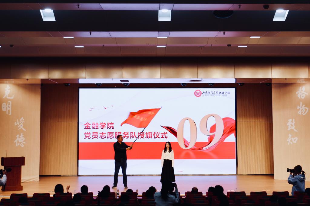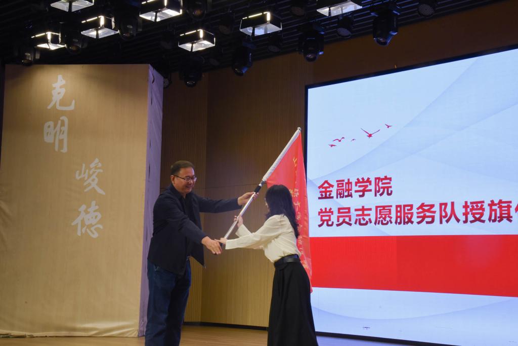 本次仪式由吴红文书记为杏吧原创 党员志愿服务队授旗。伴随着慷慨激昂的《国际歌》,吴红文书记高举旗帜走上了主席台,将象征着为人民服务的重任的旗帜交给了学生党员志愿服务队代表李蕊宇。