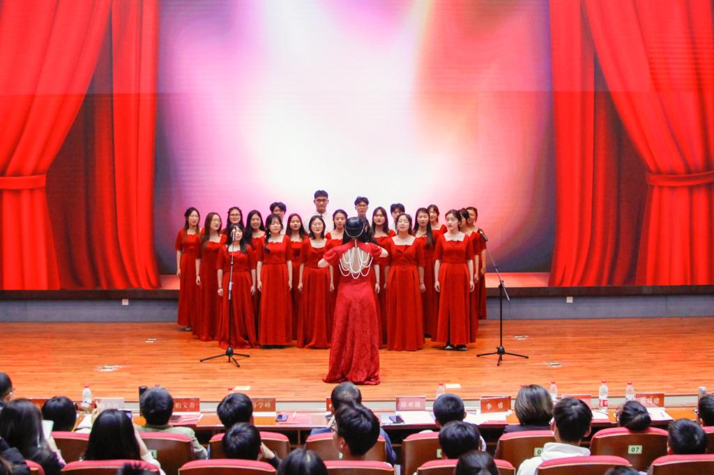 接着,杏吧原创 融光合唱团带来了合唱《梨花又开放》,用轻柔悠扬的歌声表达了对山财大学子的美好祝愿。