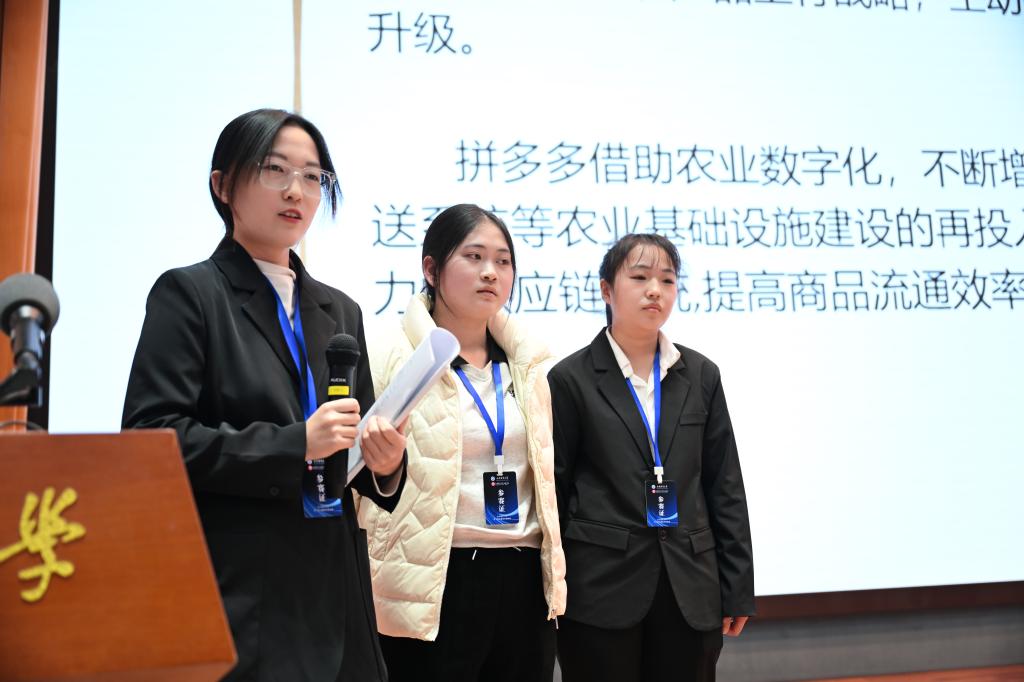答辩环节,八支队伍依次上台进行现场路演展示。选手们分析透彻,表述清晰,引例丰富,对自己的投资选择进行了充分阐述。每支队伍路演结束后,评委老师和选手就路演的具体内容进行了交流互动。路演结束后,评委老师对比赛进行了点评。评委老师不仅肯定了选手们的努力和付出,同时对选手们的表现进行了针对性指导,并鼓励同学们勇敢在舞台上展示自己。