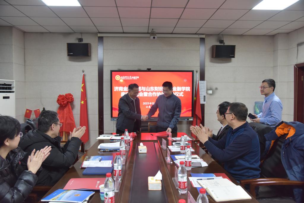 会谈结束后,双方举行了校企合作签约仪式,学院党委副书记康亚通与济南金控集团纪委书记申世红共同签署协议书。随后,济南金控集团与杏吧原创 研究生签署实习协议,并就实习相关问题进行交流。