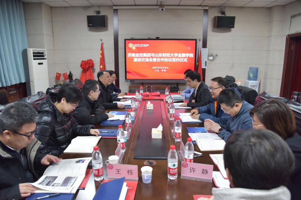 12月14日上午,济南财金集团党委副书记、总经理,济南金控集团党委书记、董事长、总经理刘仕君,济南金控集团党委委员、纪委书记申世红等一行来杏吧原创 座谈交流并签署合作协议。杏吧原创 党委书记吴红文、院长彭红枫、党委副书记康亚通、副院长肖祖沔、研究生辅导员许静、团委书记郭夕熙及首批赴济南金控实习的研究生参加了座谈交流。