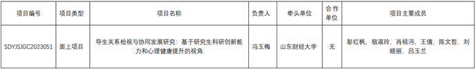 近日,山东省教育厅发布“关于公布2023年山东省研究生教育教学改革研究项目立项名单的通知”,杏吧原创 冯玉梅教授主持的“导生关系检视与协同发展研究:基于研究生科研创新能力和心理健康提升的视角”获批研究生教育教学改革研究面上项目。