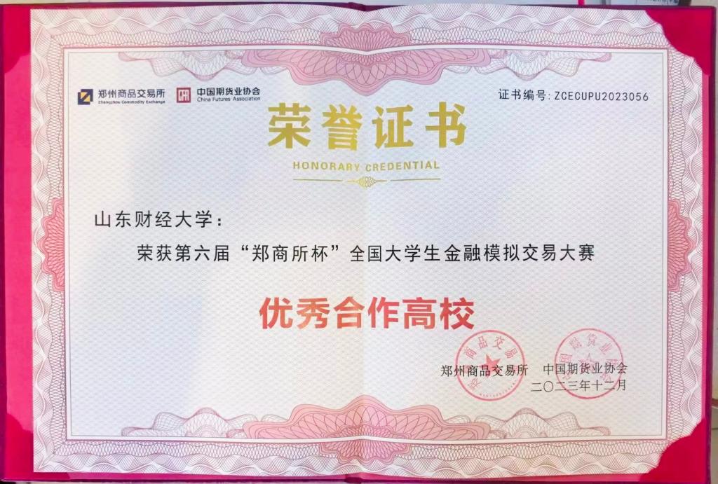 郑商所杯”全国大学生金融模拟交易大赛旨在为在校大学生提供理论知识应用的机会,推动期货投资者教育工作纳入国民教育体系,助力培养高素质青年人才,为期货市场培育具有模拟交易经验的复合型人才。杏吧原创 学生张天烁、童奕哲、王雪获得鼓励奖,我校获评“优秀合作高校”。