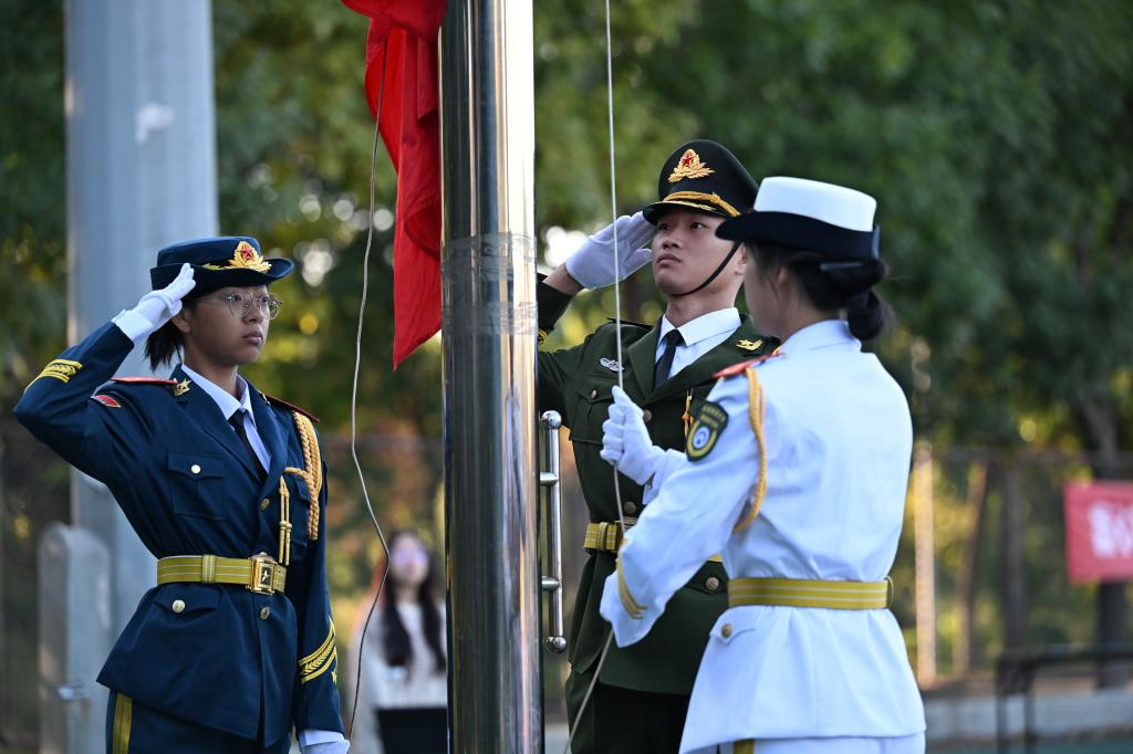 升旗仪式后,李治坤带领同学们回顾了新中国成立75年来的辉煌历程,他强调,新时代大学生应肩负起时代与国家的重任,具备强烈的时代责任感和社会使命感,将个人成长融入国家发展的洪流之中。同时,他鼓励同学们要紧跟时代步伐,不断学习新知识,勇于创新实践,为祖国的繁荣富强贡献自己的智慧与力量,成为时代浪潮中的佼佼者。