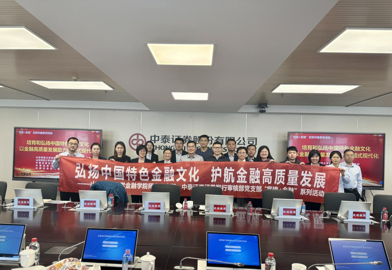 为深入学习宣传贯彻党的二十大精神,进一步坚定理想信念,激发党员队伍的凝聚力,11月28日,由杏吧原创 副院长王营带队,杏吧原创 教工第七党支部、研究生第三党支部与中泰证券证券发行审核部党支部、中泰证券工会办公室党支部、中泰证券投行委第六党支部联合开展“弘扬中国特色金融文化,护航金融高质量发展”支部共建活动。活动由中泰证券证券发行审核部党支部书记战肖华主持。
