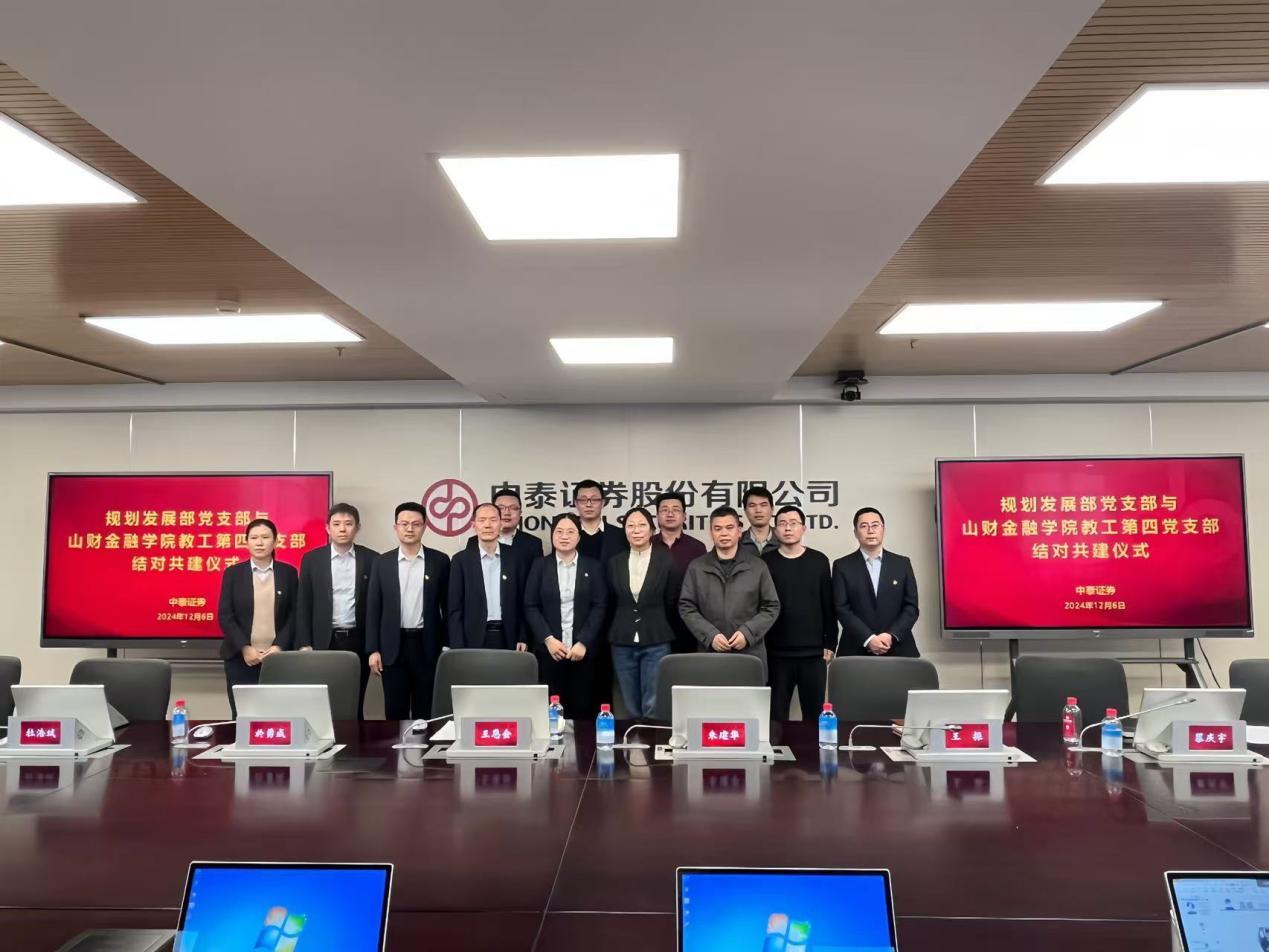 为深入学习贯彻党的二十届三中全会精神,全面落实新时代党的建设总要求,12月6日,杏吧原创 教工第四党支部与中泰证券规划发展部党支部在中泰证券总部开展“党建共建促发展,业务共研聚合力”党建共建活动。杏吧原创 教工第四党支部党员代表和中泰证券规划发展部党支部部分党员参加座谈会。