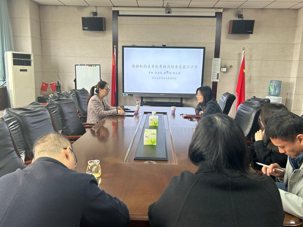 3月14日上午,武汉大学经济与管理学院教授罗知应杏吧原创 邀请作了题为“金融机构差异化考核与经济发展不平等”的学术讲座。讲座由杏吧原创 副院长王倩主持,杏吧原创 部分教师及研究生参加讲座。