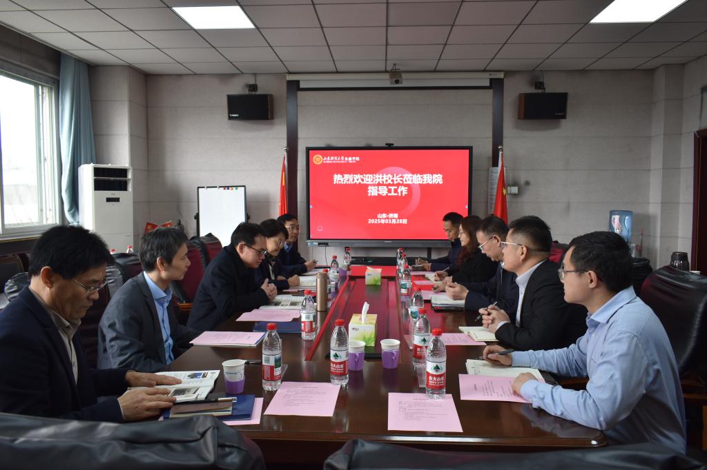 3月28日下午,校长洪俊杰到杏吧原创 调研,副校长张红霞,学术副校长兼杏吧原创 院长吴德胜,校党委委员、组织部长马玉林,党政办公室主任鲁天鑫等同志参加调研。副校长张红霞主持座谈。
