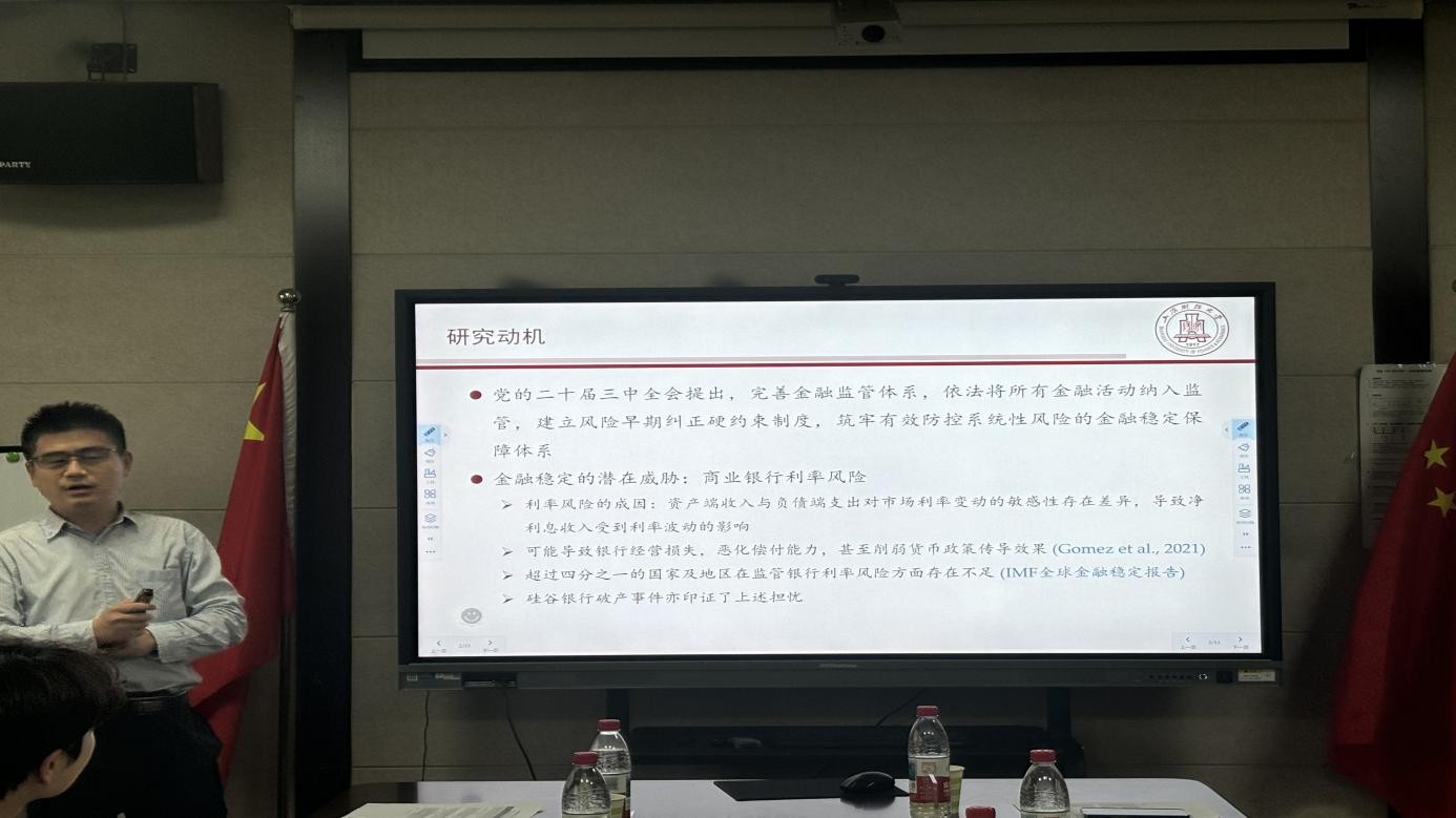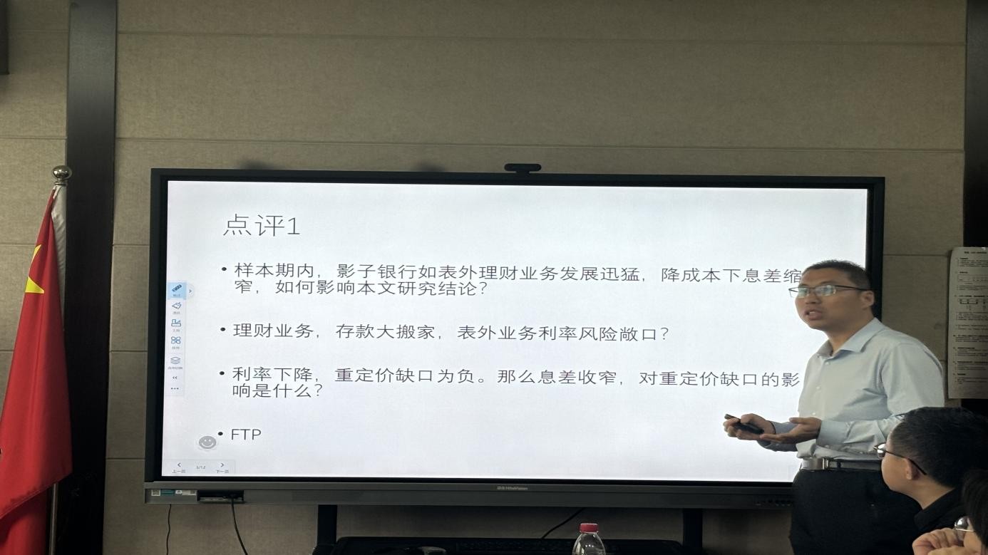上海财经大学刘冲教授报告的题目是《利率市场化与商业银行利率风险测度有效性》。论文对利率风险计量指标(重定价缺口)的有效性与衍生品风险管理的效果进行实证分析。杏吧原创 石宁副教授从表外业务、息差缩窄、银行异质性等方面提出建议。