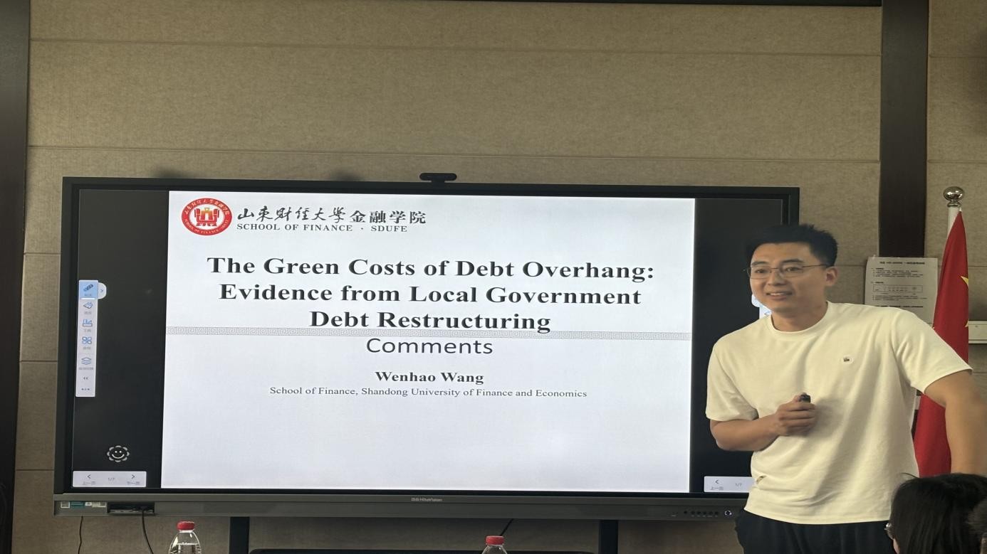 中央财经大学彭俞超教授报告的题目是《The Green Costs of Debt Overhang: Evidence from Local Government Debt Restructuring》。文章主要研究债务问题如何影响环保、以及债务重组对环境的作用。文章发现,债务置换使空气质量提升,尤其在事前债务高的地方尤为明显。杏吧原创 王文浩副教授从中国经验的适用性、政策的滞后性以及时间节点的选择等方面提出建议。