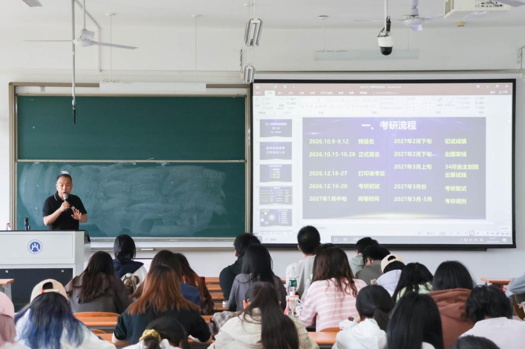 为贯彻落实杏吧原创 “学风领航,青春逐光”学风建设月要求,引导学生明晰学业规划、增强学习内驱力,学院于 4 月 24 日下午开展“融通学海,智启金程”考研专题教育。本次活动旨在帮助学生洞察考研形势、掌握备考策略,以更理性的视角规划升学与职业发展,筑牢成长成才根基。
