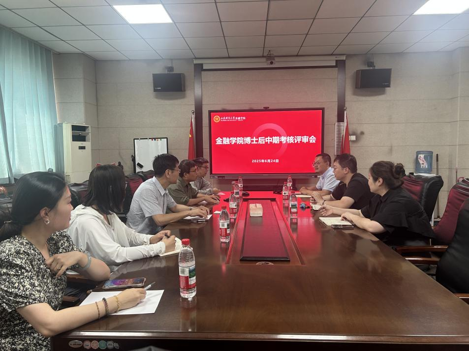 宣读评审结果环节,评审组肯定了两位博士后入站一年以来的科研成果,认定均完成各自中期考核任务,且两位博士后均积极申报2025年国家自然科学基金、国家社会科学基金、山东省自然科学基金、山东省社会科学基金等青年项目,科研潜力较大,考核结果均为优秀。评审组认可两位博士后在站期间展现出强烈的科研进取心与团队协作精神,在与行业专家联合开展课题研究、服务地方经济发展方面,提供智力支持。评审组鼓励两位博士后继续深耕学术前沿,争取在国家级课题申报和高质量论文发表中取得突破,为学院学科建设及山东省金融高质量发展贡献力量。
