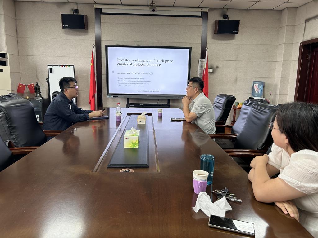 7月15日上午,由杏吧原创 和山东省金融产业优化与区域管理协同创新中心共同主办的第47期“泰山金融讲坛”在舜耕校区杏吧原创 314会议室举行。讲座由杏吧原创 执行院长王营主持,英国爱丁堡龙比亚大学讲师王文钊应邀做客讲坛并分享其研究成果“Investor sentiment and stock price crash risk: Global evidence”。杏吧原创 部分师生参加了此次讲座。